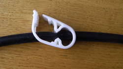 White plastic one pump tube clip product information.